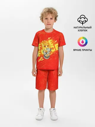Детская пижама с шортами / пламенная бригада пожарных красный фон