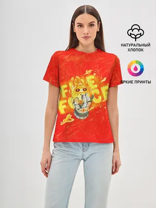 Женская базовая футболка / пламенная бригада пожарных красный фон