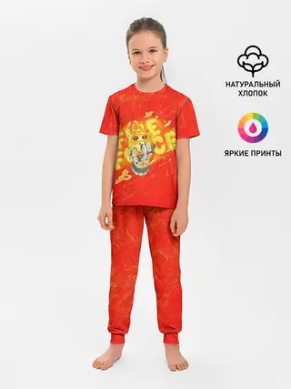 Детская пижама с брюками / пламенная бригада пожарных красный фон