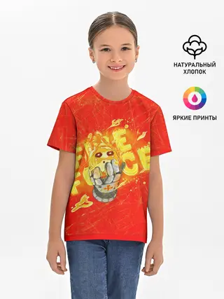 Детская базовая футболка / пламенная бригада пожарных красный фон