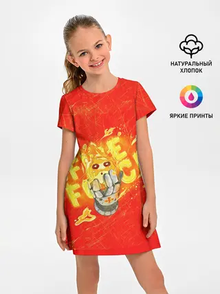 Детское платье / пламенная бригада пожарных красный фон