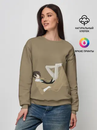 Лонгслив женский. Хлопок / Хатсуне сидит прикрыв глаза