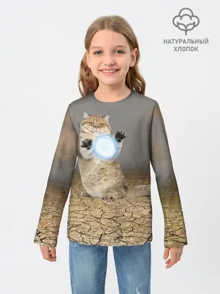 Лонгслив женский. Хлопок / Кот хочет кушот