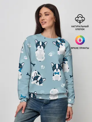 Лонгслив женский. Хлопок / Французские бульдоги