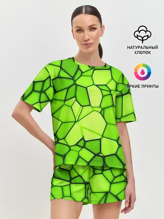 Женская пижама с шортами / Зеленая мозаика