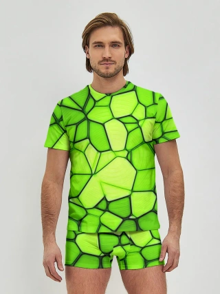 Мужские трусы с футболкой / Зеленая мозаика