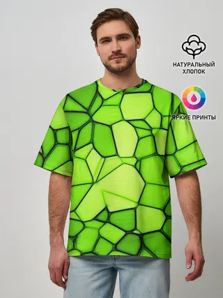 Мужская футболка оверсайз / Зеленая мозаика