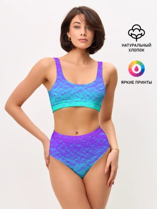 Лонгслив женский. Хлопок / Фиолетовые цветы