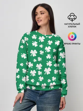 Лонгслив женский. Хлопок / Клевер на День святого Патрика