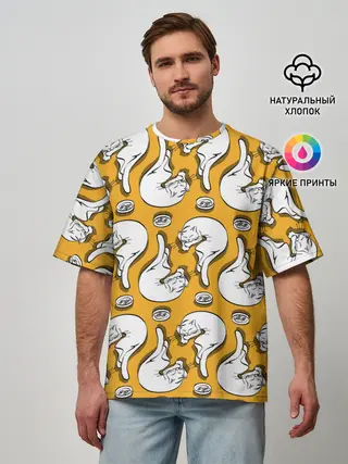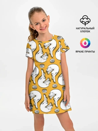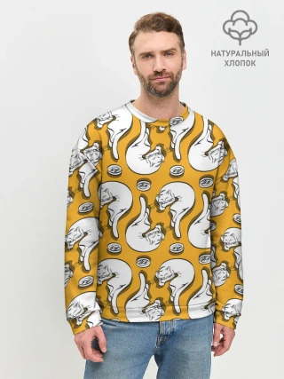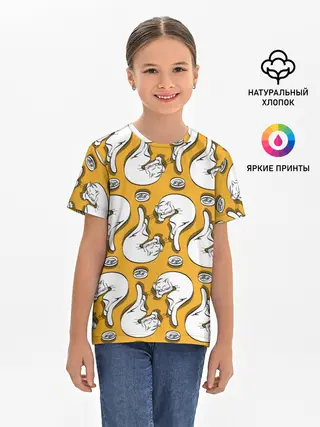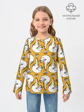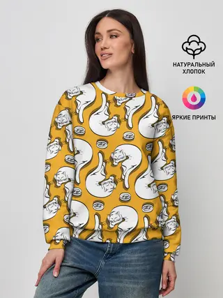 Лонгслив женский. Хлопок / Белая кошка и корм