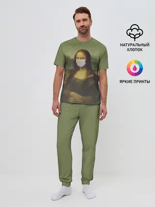 Мужская пижама с брюками / Мона Лиза в маске
