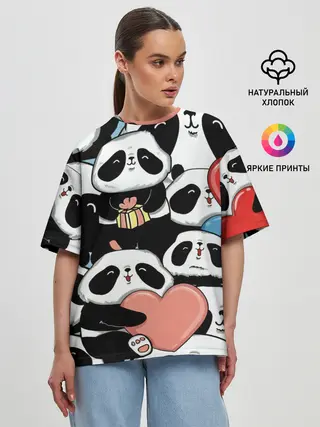 Женская футболка оверсайз / Панды.