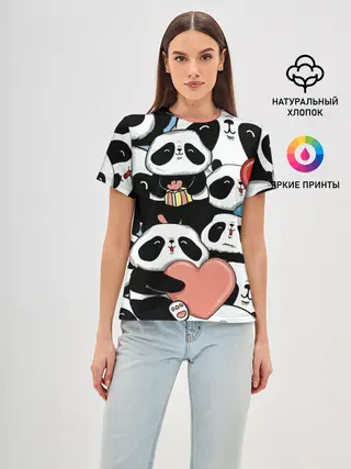 Женская базовая футболка / Панды.