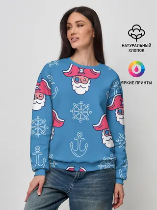 Лонгслив женский. Хлопок / Корабли и девушка викинг