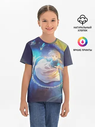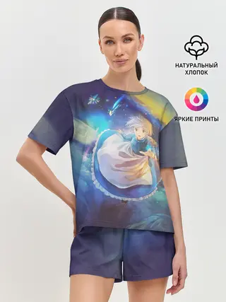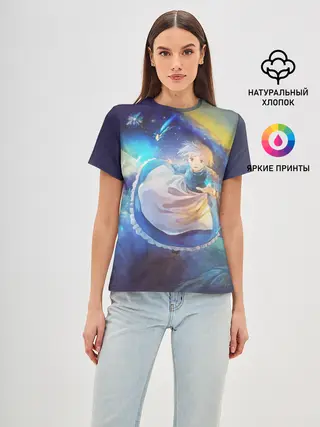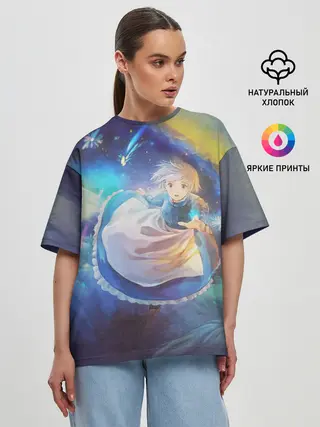 Лонгслив женский. Хлопок / Ходячий замок в облаках