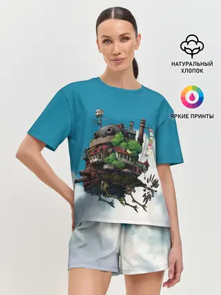 Женская футболка оверсайз / Ходячий замок в облаках