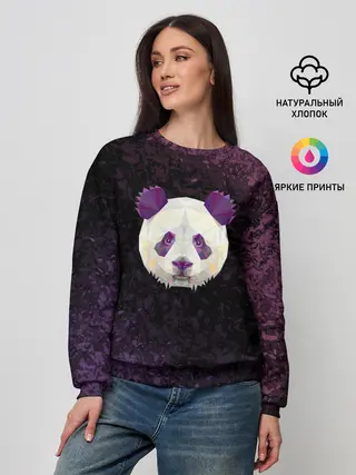 Лонгслив женский. Хлопок / Панды На Велосипеде