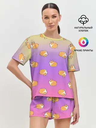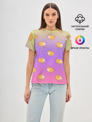 Лонгслив женский. Хлопок / Стич с лягушкой