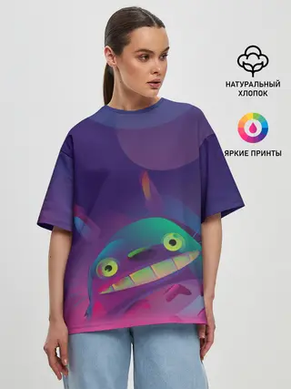 Женская футболка оверсайз / Тоторо выглядывает