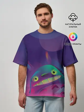 Мужская футболка оверсайз / Тоторо выглядывает