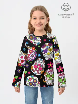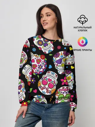 Лонгслив женский. Хлопок / Совушка и хэллоуин