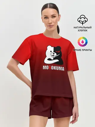 Женская футболка оверсайз / monokuma на красном градиенте