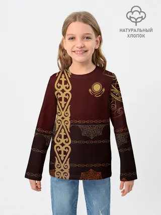 Лонгслив женский. Хлопок / Казахстан, лента с гербом