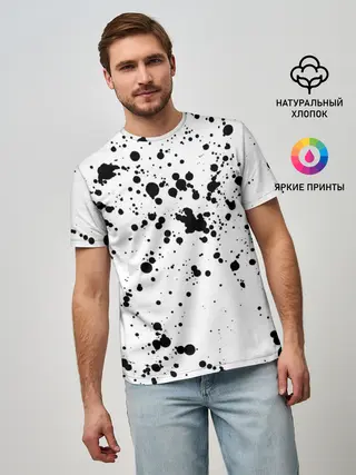 Мужская базовая футболка / Далматинец - брызги чёрными пятнами