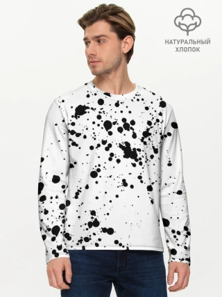Мужской лонгслив базовый / Далматинец - брызги чёрными пятнами