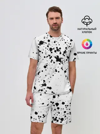 Мужской костюм с шортами / Далматинец - брызги чёрными пятнами