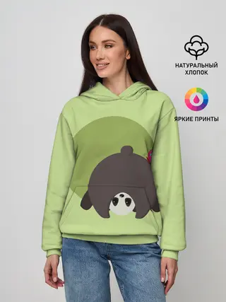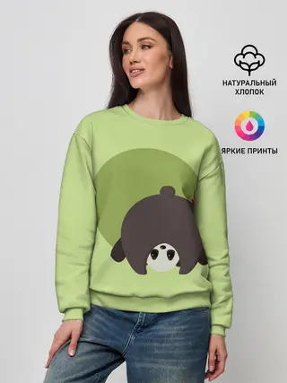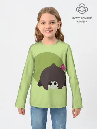 Лонгслив женский. Хлопок / Прикольная панда с бабочкой