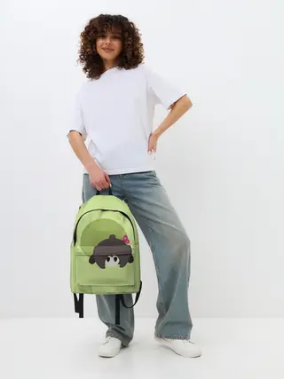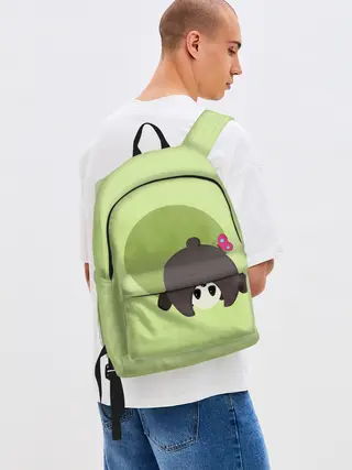 Рюкзак джинсовый / Прикольная панда с бабочкой