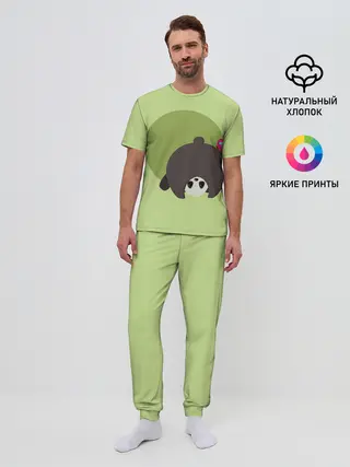 Мужская пижама с брюками / Прикольная панда с бабочкой