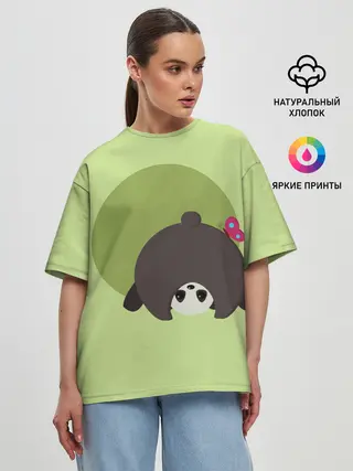 Женская футболка оверсайз / Прикольная панда с бабочкой