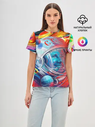 Женская базовая футболка / Юрий Гагарин | Всплеск Цветов