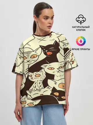 Женская футболка оверсайз / КОТЯТА ПАТТЕРН