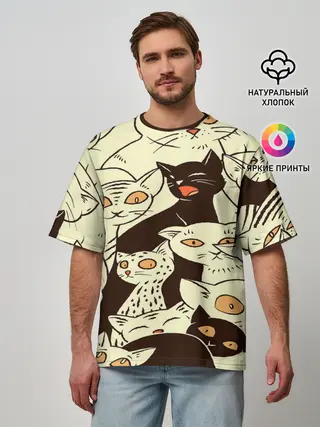 Мужская футболка оверсайз / КОТЯТА ПАТТЕРН
