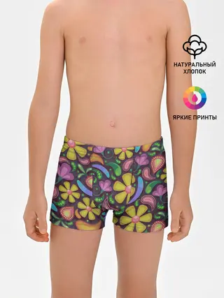 Трусы для мальчиков / летние цветы узор на темном