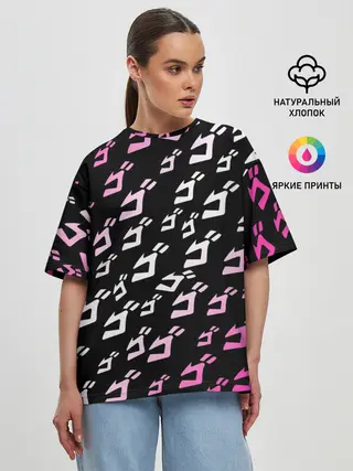 Женская футболка оверсайз / Паттерн джоджо белорозовый
