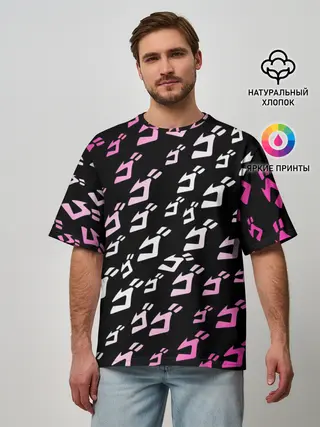 Мужская футболка оверсайз / Паттерн джоджо белорозовый