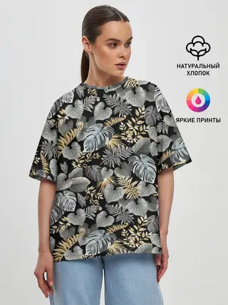 Женская футболка оверсайз / Серебряные листочки