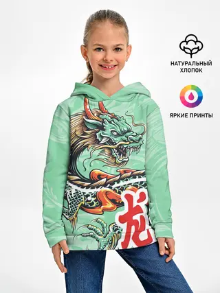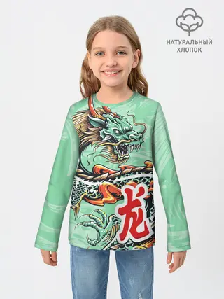 Лонгслив женский. Хлопок / Изумрудный дракон