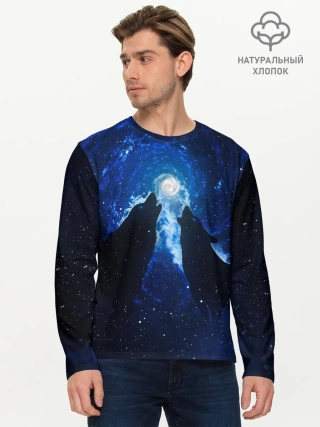 Мужской лонгслив базовый / Волки силуэты звездное небо