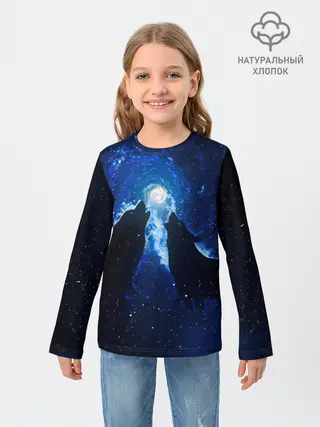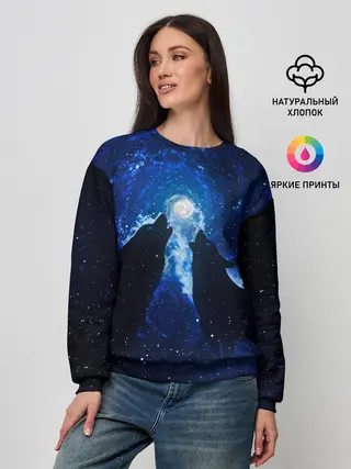 Лонгслив женский. Хлопок / Волки силуэты звездное небо