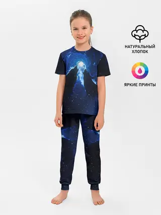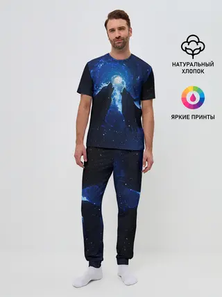 Мужская пижама с брюками / Волки силуэты звездное небо