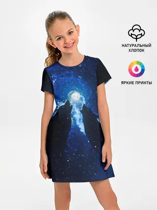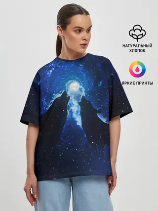 Женская футболка оверсайз / Волки силуэты звездное небо