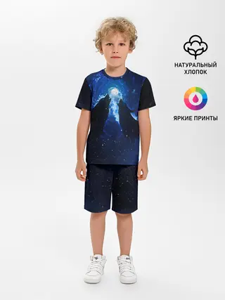 Мужской костюм с шортами / Волки силуэты звездное небо