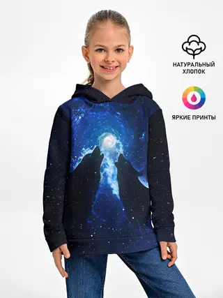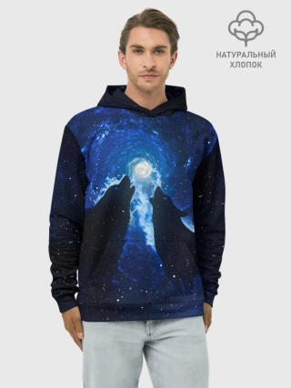 Худи мужской база хлопок / Волки силуэты звездное небо