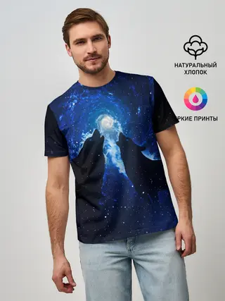 Мужская футболка оверсайз / Волки силуэты звездное небо