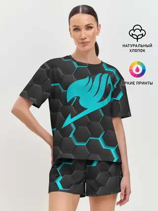 Женская футболка оверсайз / Хвост Феи голубые соты